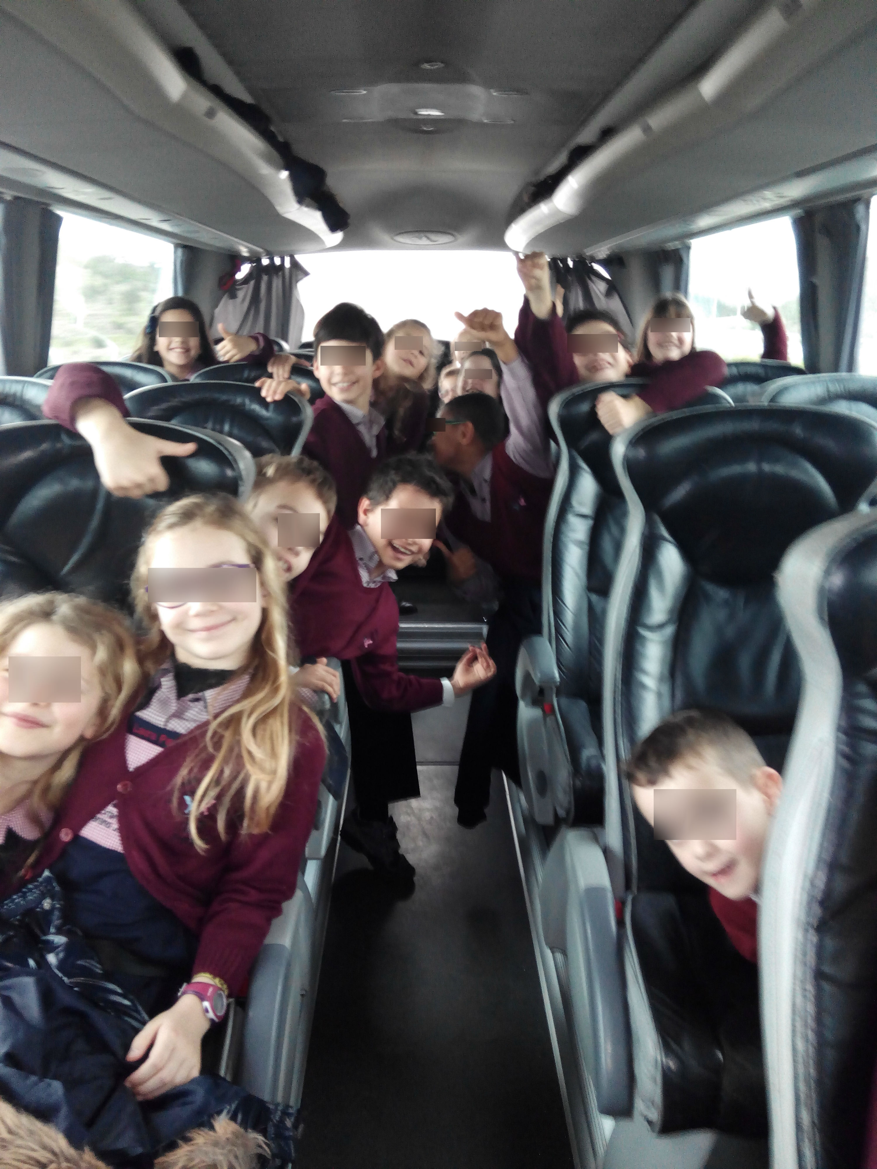 Às 17h estávamos já no autocarro para dar início ao regresso. Antecipámos a paragem dos veículos na área de serviço de Grândola para permitir realizar o lanche mais cedo. Ida à casa de banho concluída, muitas contagens feitas, e lá seguimos para Faro onde nos esperava uma grande comitiva de familiares dos nossos alunos.