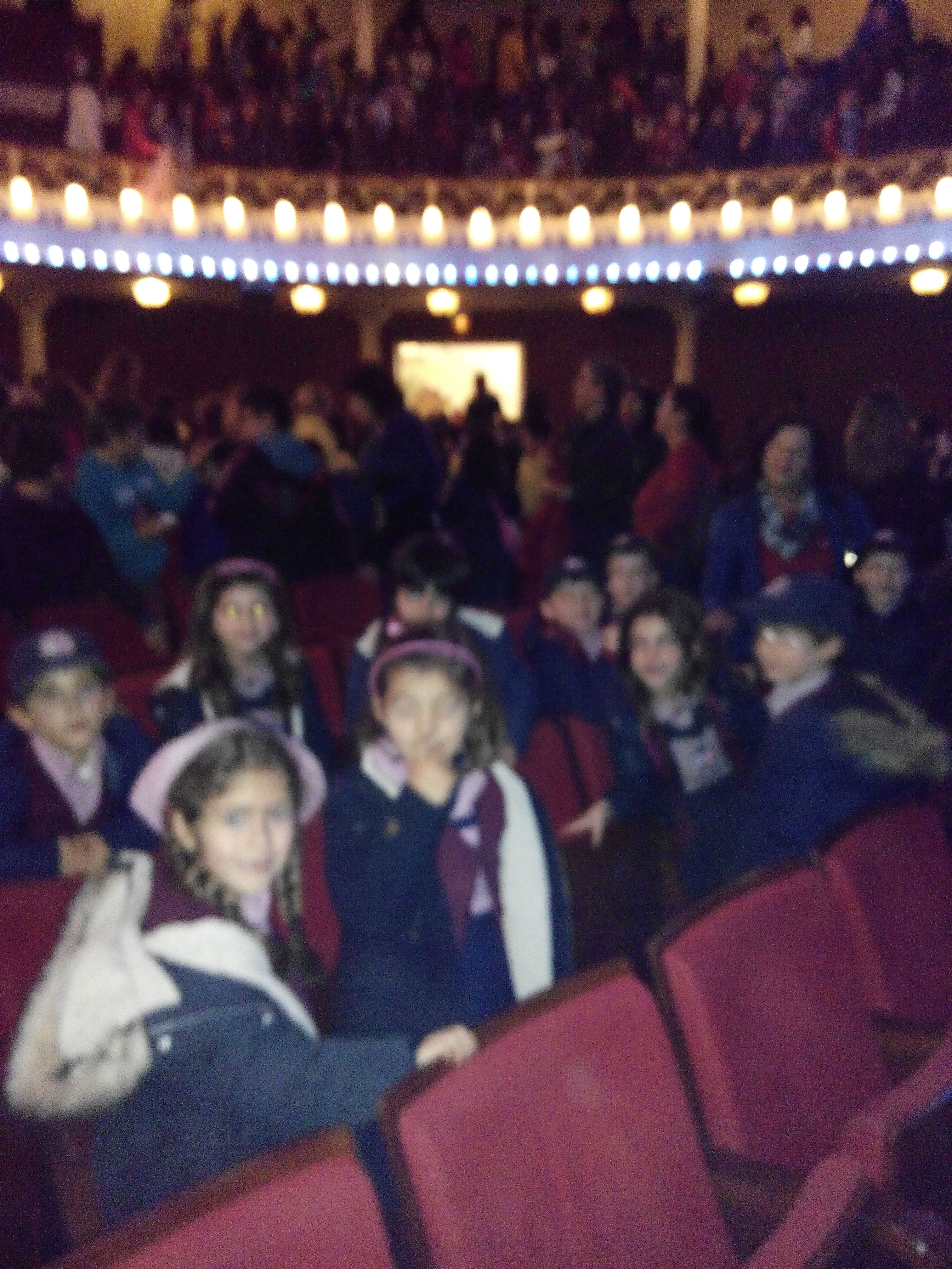 A chegada aos Restauradores acontece já muito próximo do início do espetáculo. Tudo demora tempo. Contagens realizadas e lá seguimos para o Politeama. Somos a última Escola a chegar, mas ainda dentro do horário estabelecido. Informam-nos que temos de separar o grupo. Com relutância aceitamos a inevitabilidade. O teatro está cheio. Organizámo-nos rapidamente, realizámos nova contagem, e dividimos os nossos alunos pela plateia (1º e 4º ano) e 1º balcão (2º e 3º ano). A divisão do grupo e dos adultos é sempre um fator de fragilidade que não gostamos. Manifestámos essa insatisfação junto da responsável pelo Teatro, afinal: “se sabiam antecipadamente quantos somos deviam ter reservado um espaço único para a nossa Escola“. Encolhe os ombros. O espetáculo está a começar!