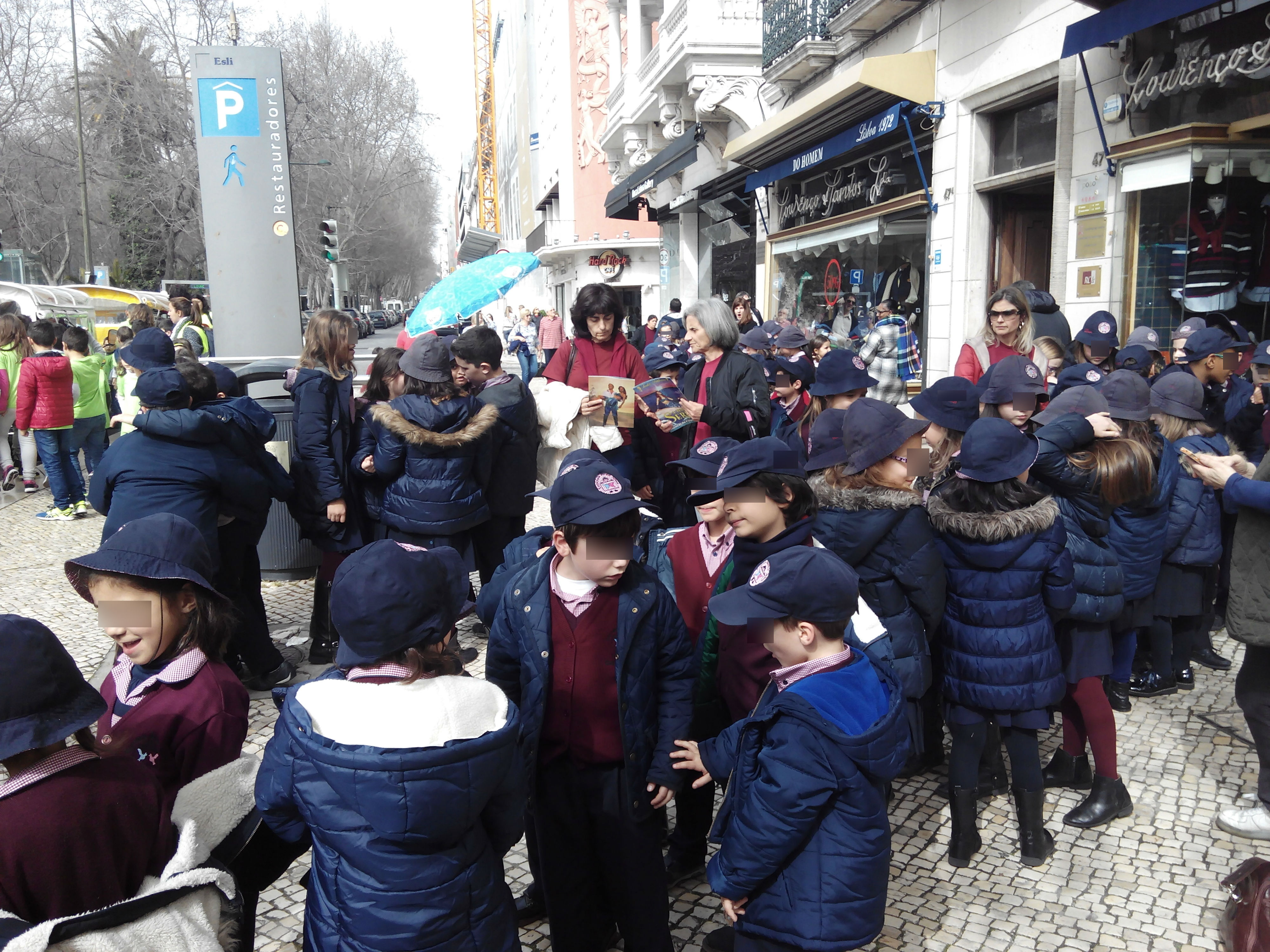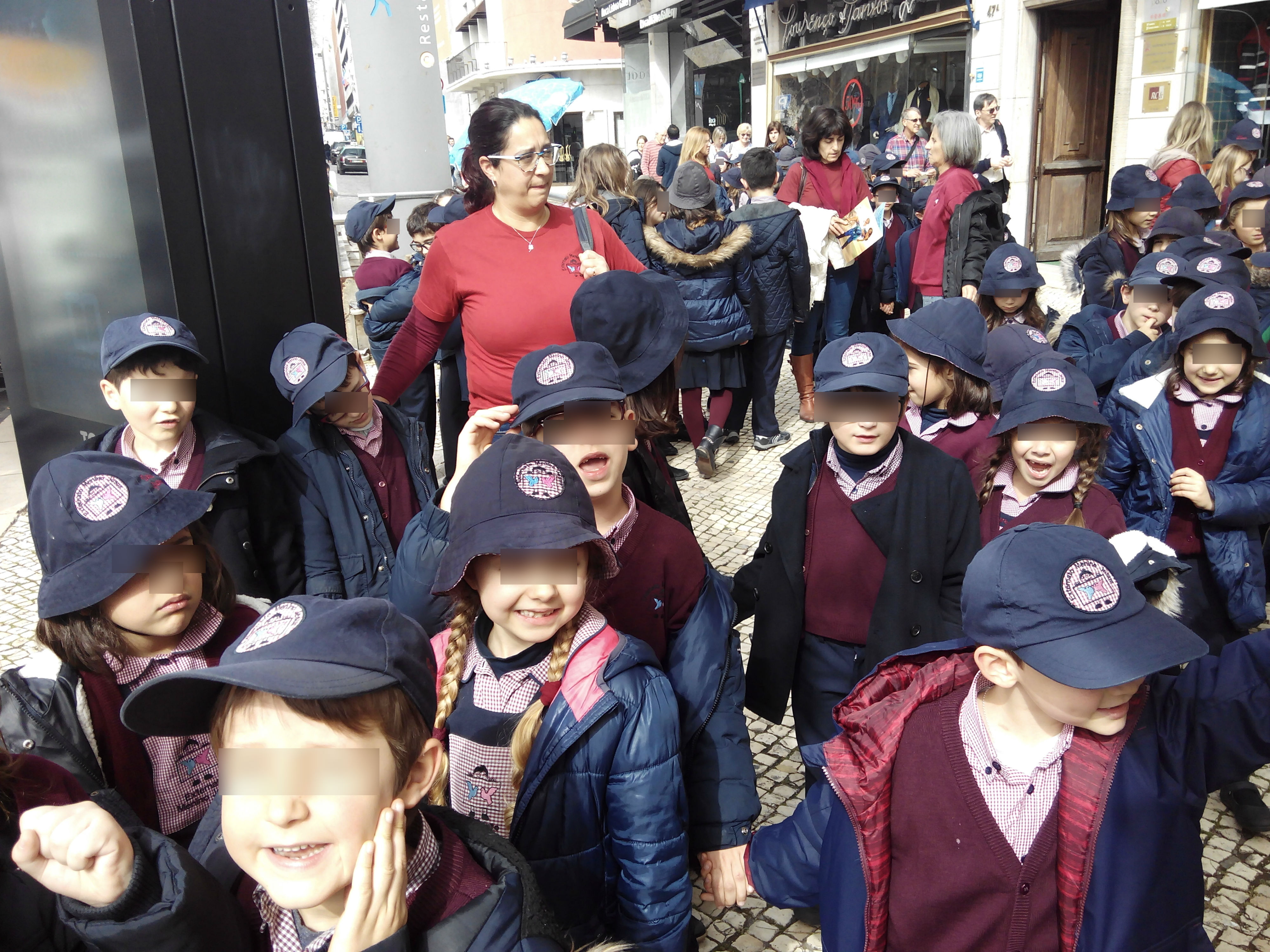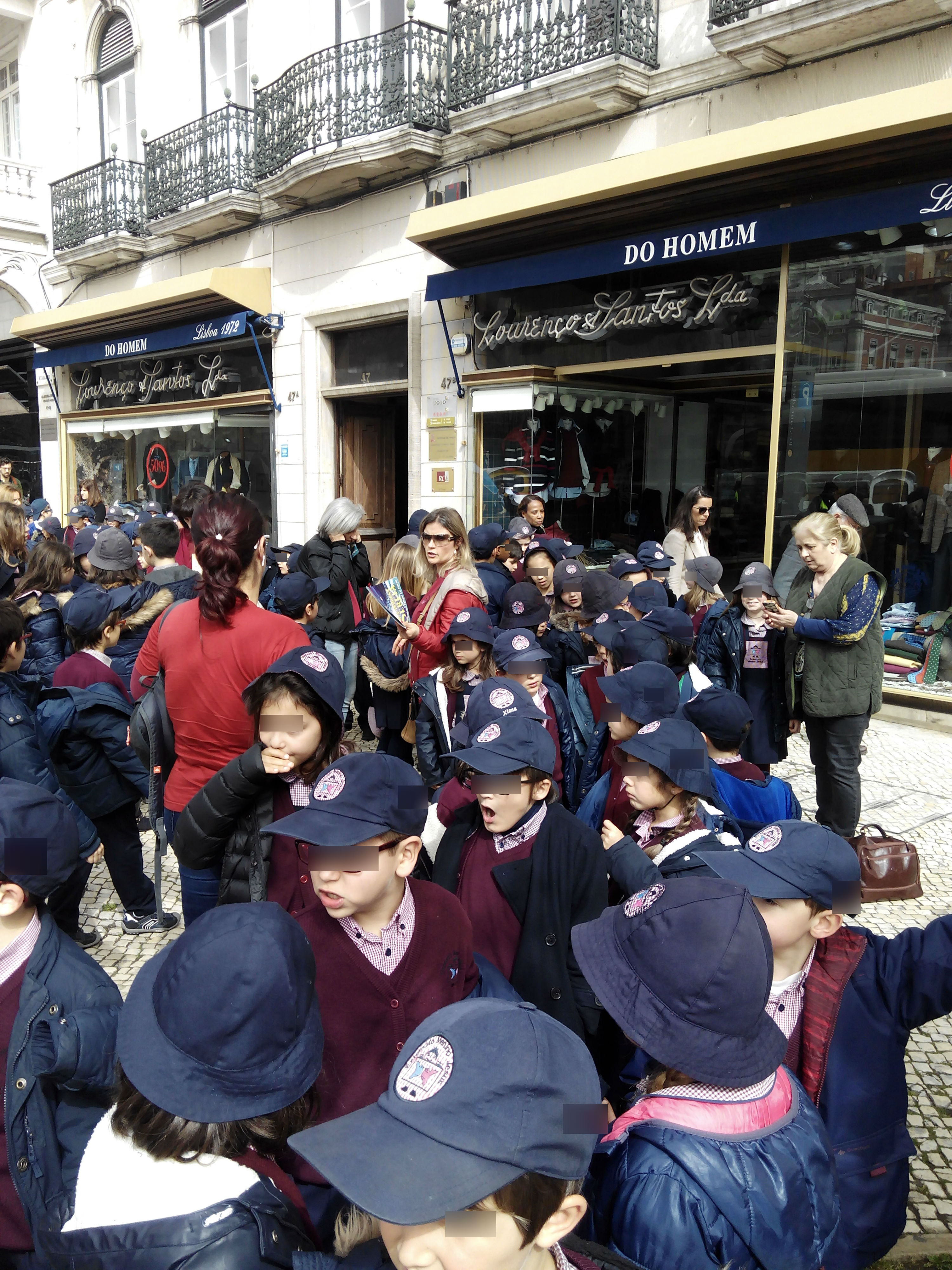 No final do espetáculo reunimos imediatamente o grupo. Contagem realizada, organizámos nova ida à casa de banho. Após a satisfação das necessidades fisiológicas de crianças e adultos, articulámo-nos telefonicamente com os motoristas e com a PSP para embarcarmos nos autocarros, novamente nos Restauradores.