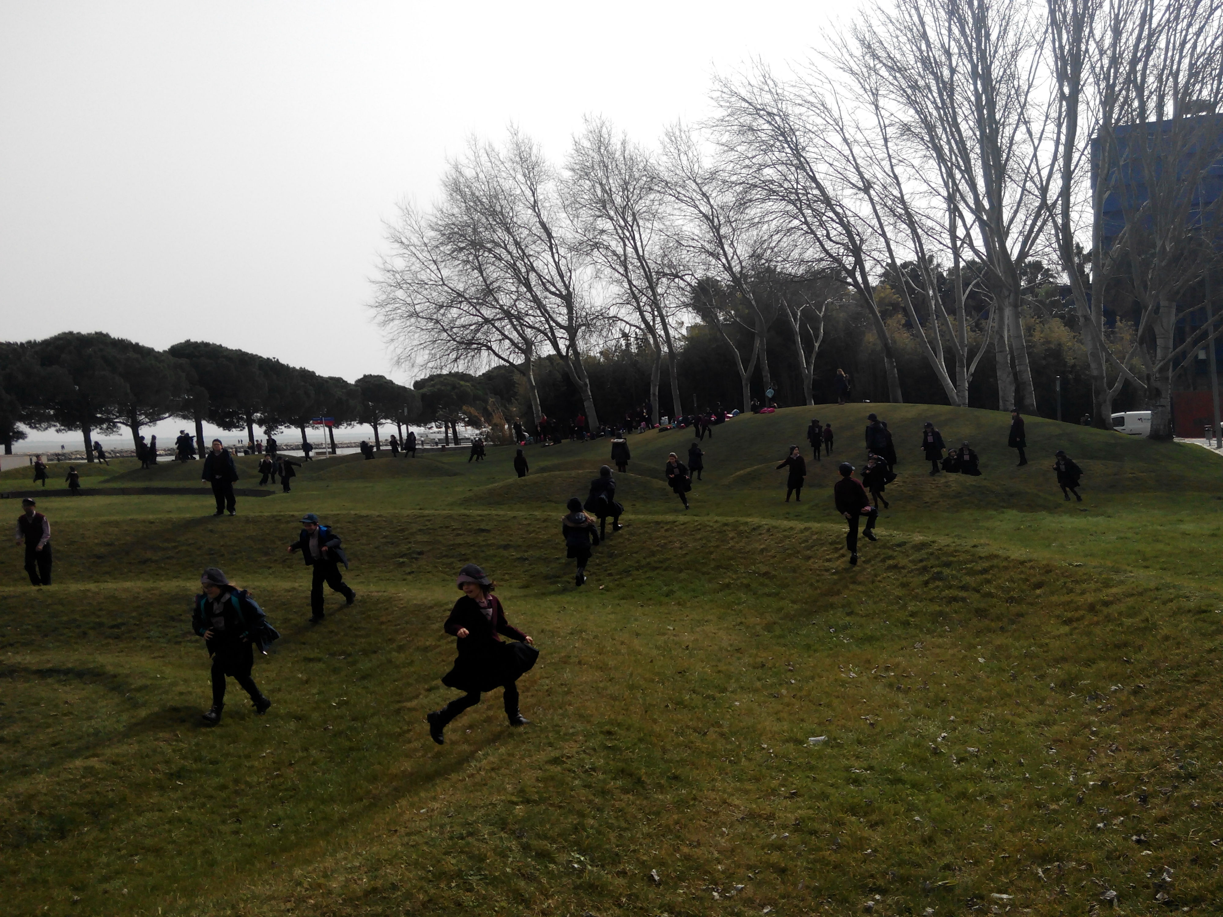 Chegámos ao Parque das Nações pouco depois das 13h. Muitas crianças já reclamavam ter fome. Com o propósito de almoçarmos dirigimo-nos para o jardim habitual. Tudo decorre normalmente e, após a refeição, pudemos disponibilizar às nossas crianças quase 1h de correria, num parque cujo grande atrativo são as pequenas elevações relvadas que permitem muitas brincadeiras.