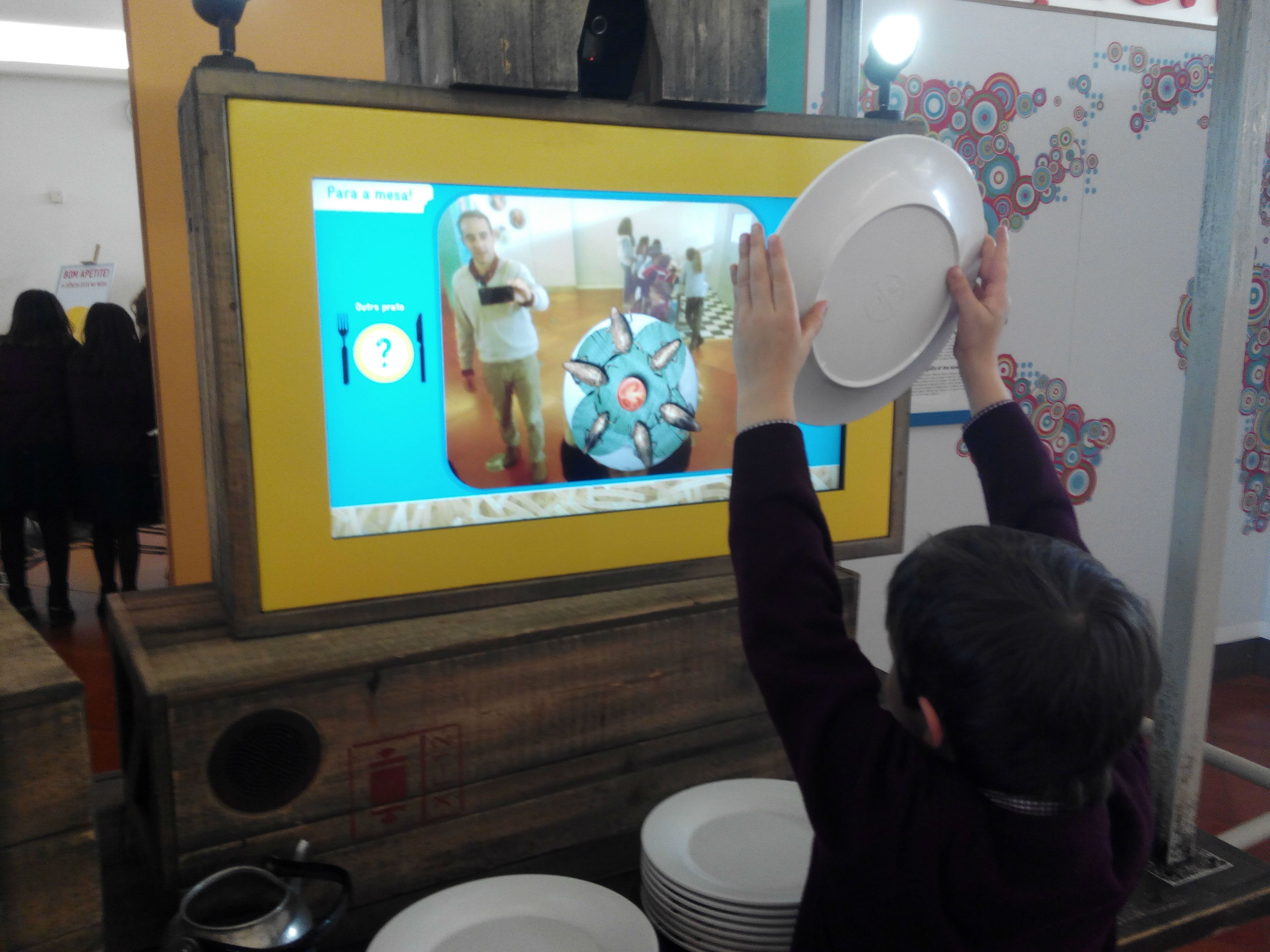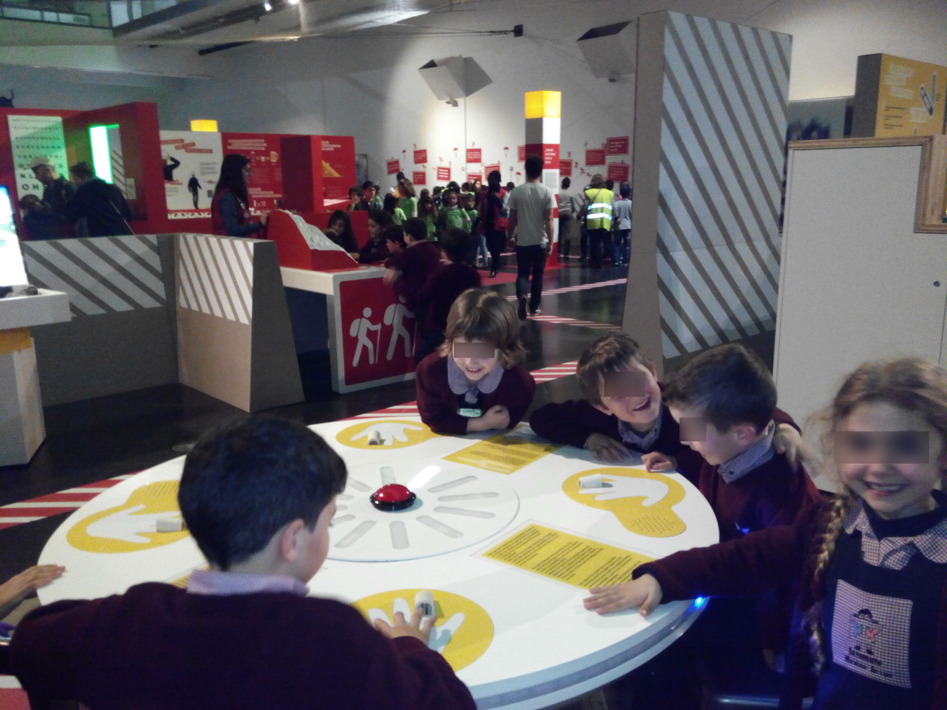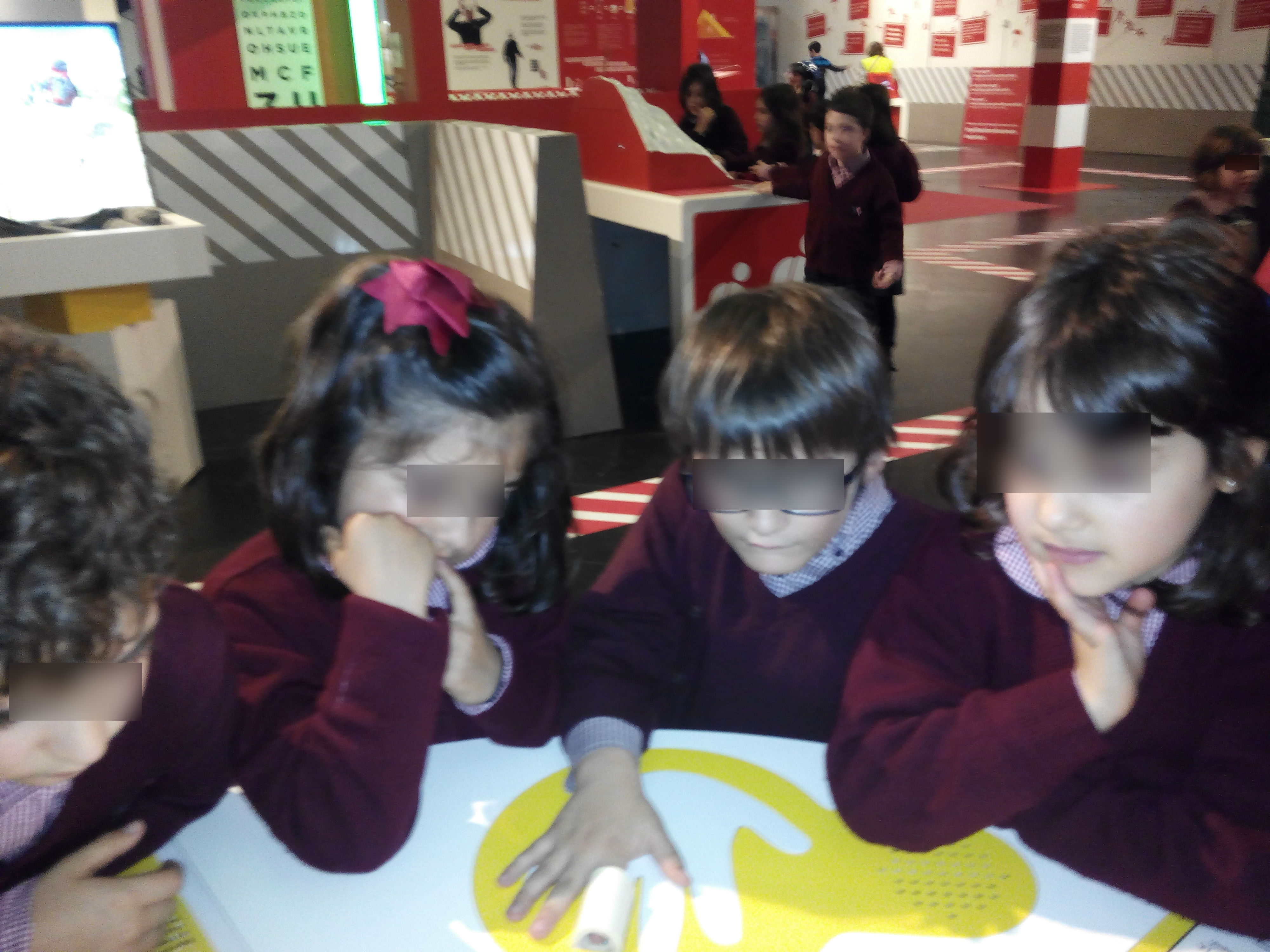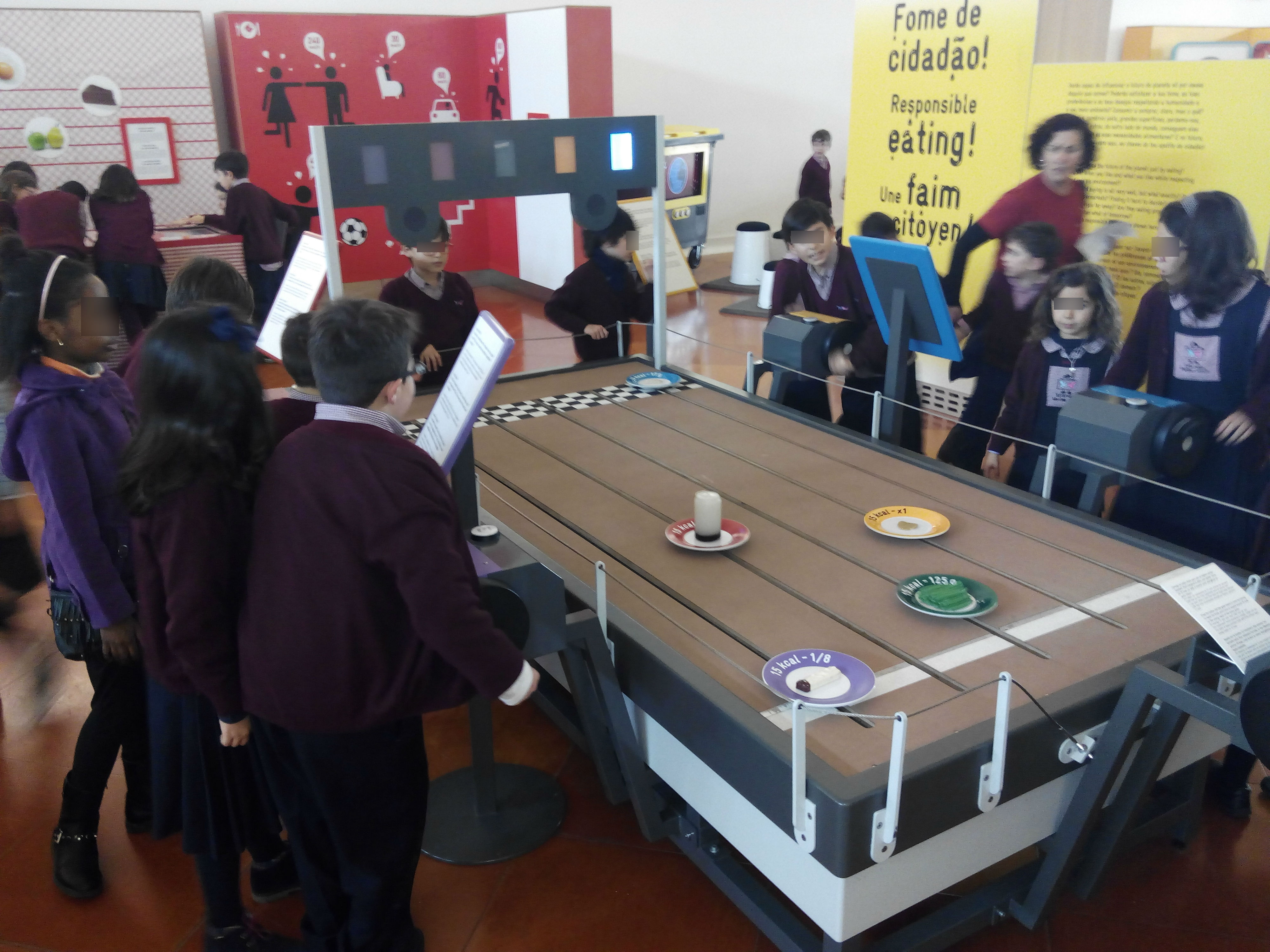 As palmas foram batidas às 14h20m. Estava na hora de nos dirigirmos para o Pavilhão do Conhecimento. As exposições visitadas – “Risco, uma exposição para audazes”, “Bom apetite, a ciência está na mesa” e “Explora”- foram objeto de grande interesse por parte dos nossos alunos. De assinalar o caráter interativo e didático destas exposições que potenciam enormemente o envolvimento das crianças. A presença de monitores sempre disponíveis também ajudou a perceber melhor certas abordagens propostas. O difícil foi convence-los a regressar. Invariavelmente ouvimos um sonoro: “já acabou ?!?” quando, no final, reunimos e contámos o grupo. Estivemos 1h45m no Pavilhão do Conhecimento.