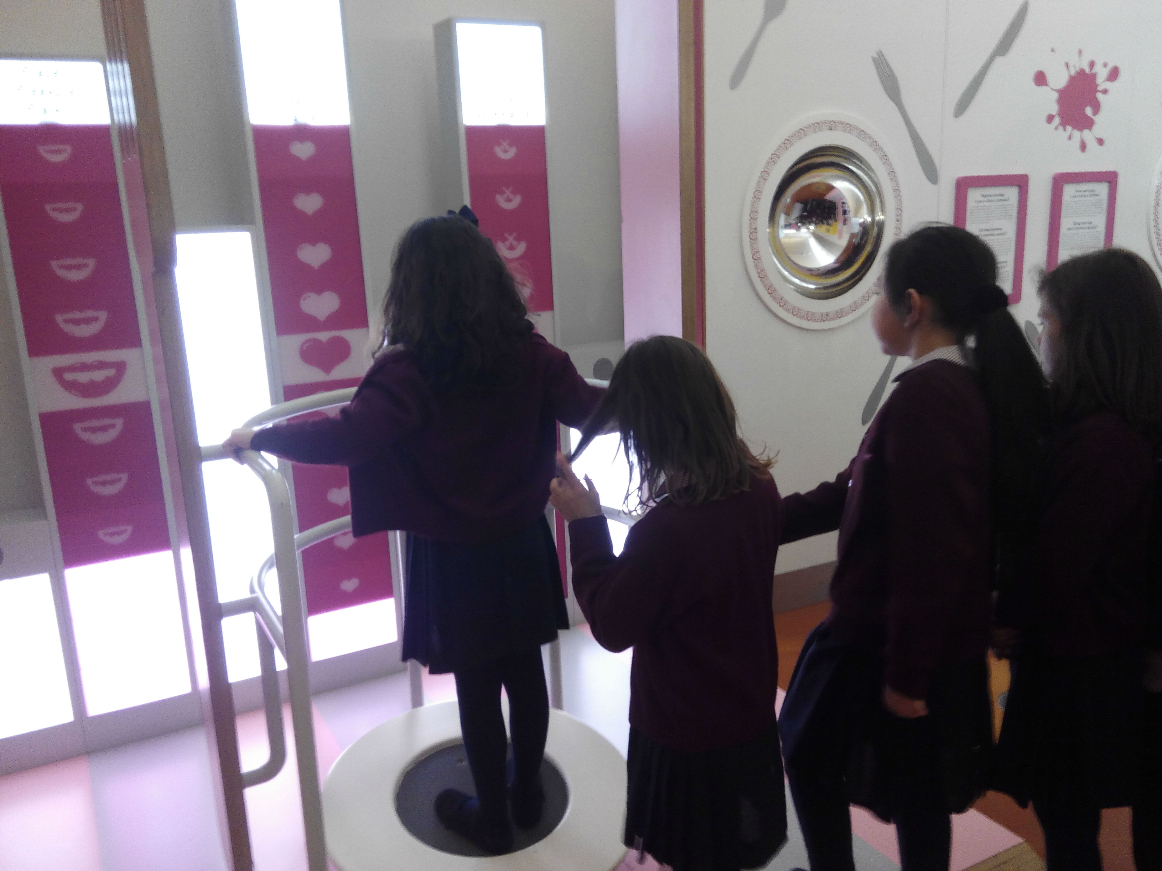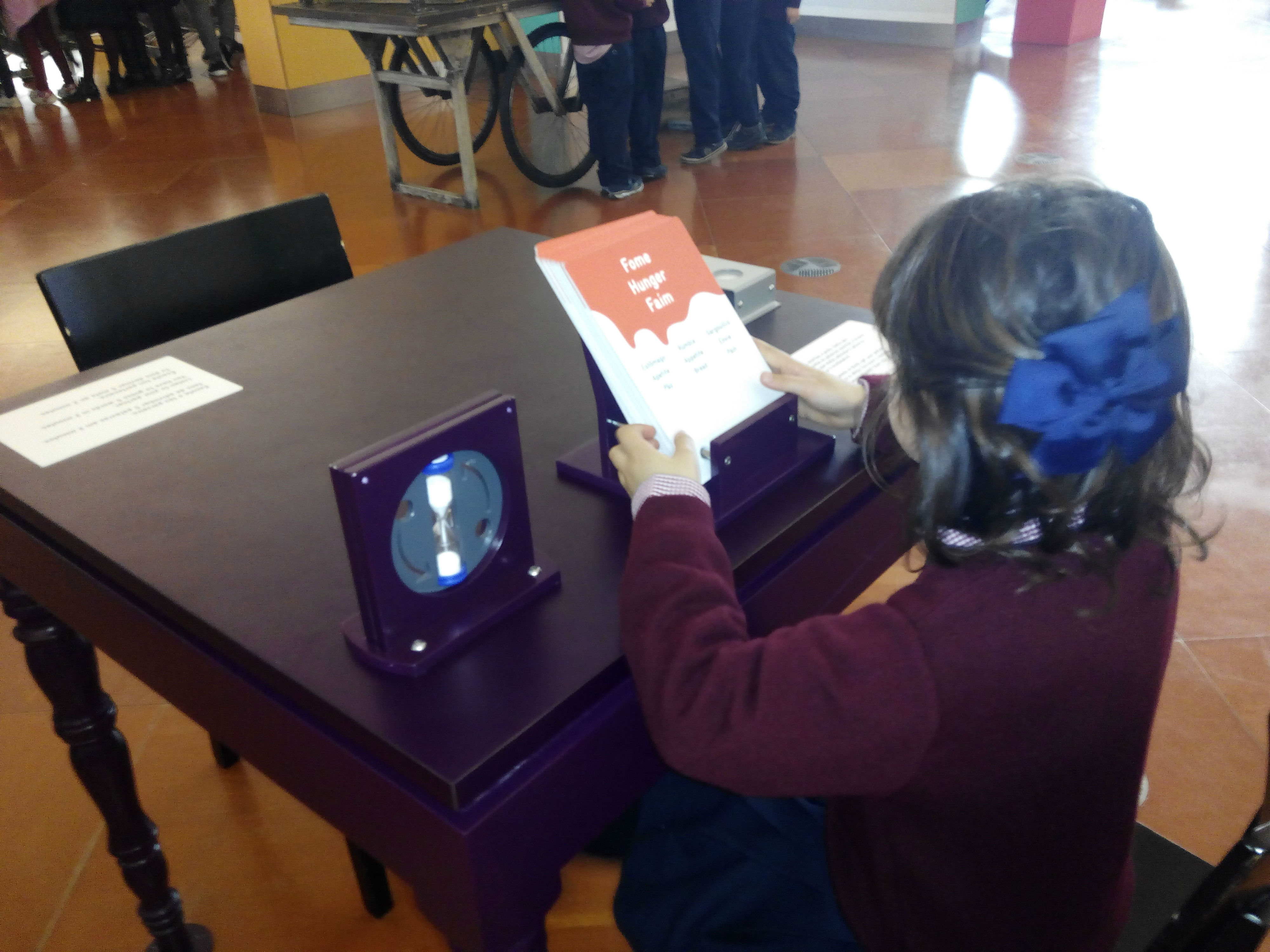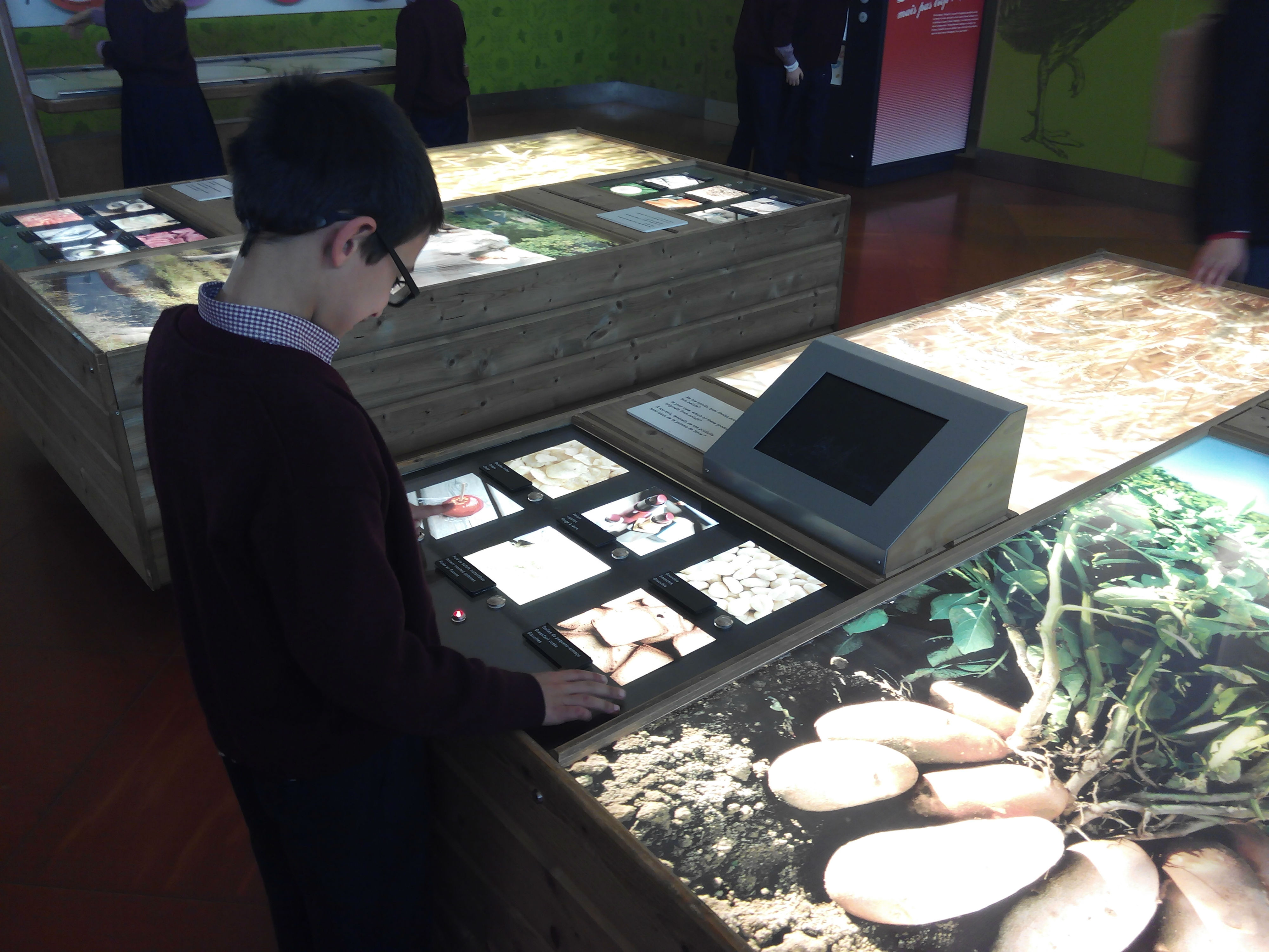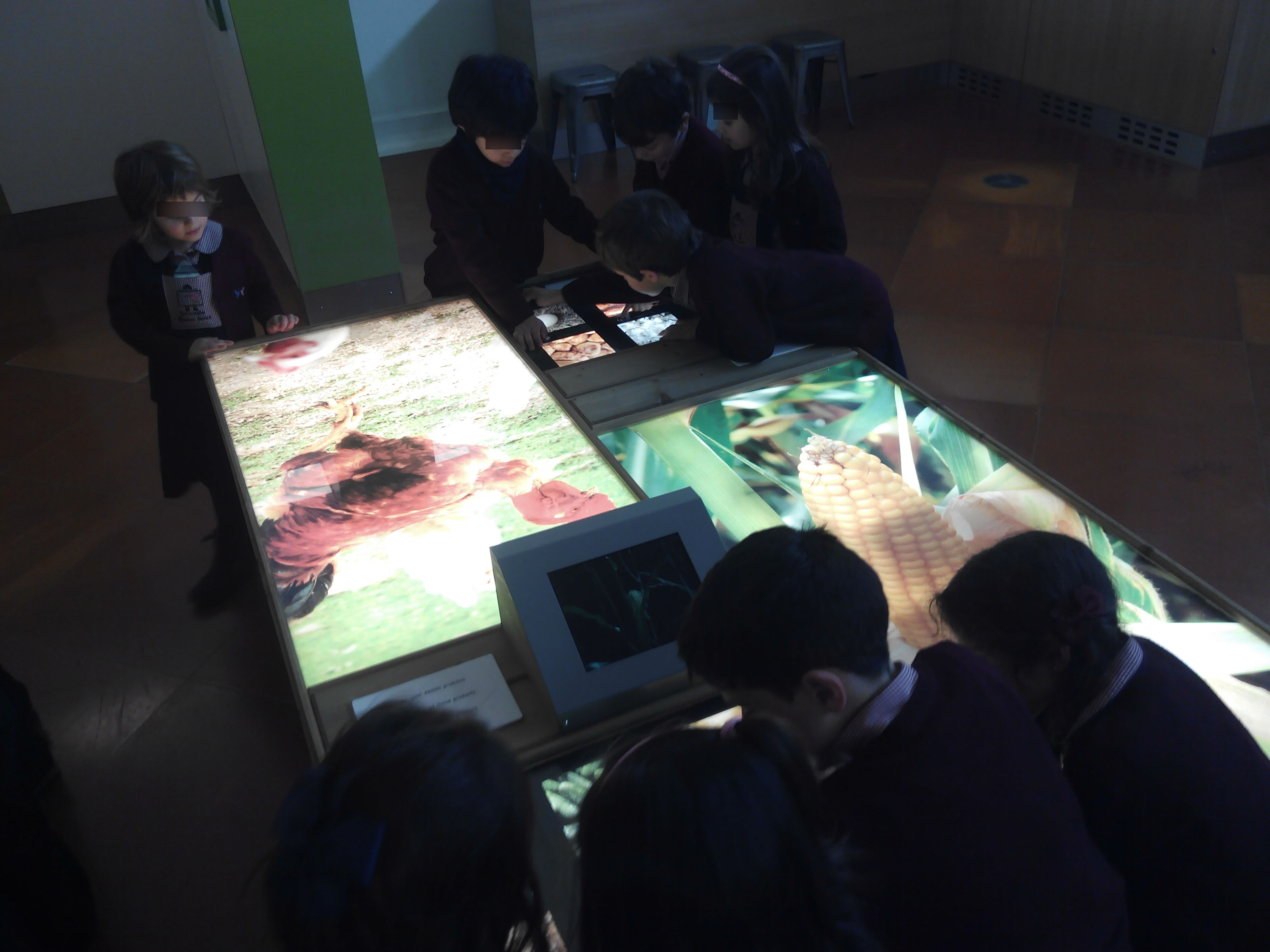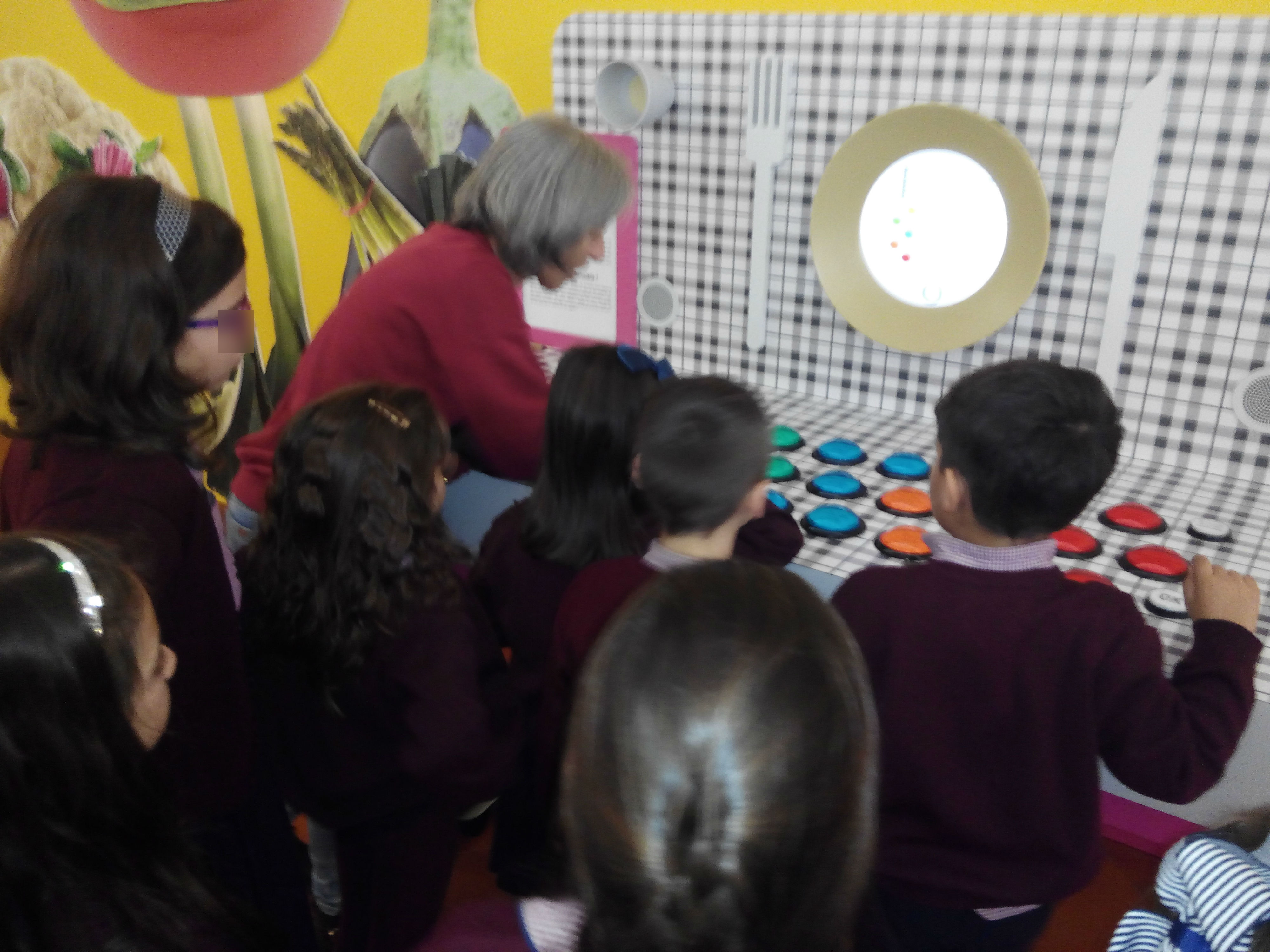 As palmas foram batidas às 14h20m. Estava na hora de nos dirigirmos para o Pavilhão do Conhecimento. As exposições visitadas – “Risco, uma exposição para audazes”, “Bom apetite, a ciência está na mesa” e “Explora”- foram objeto de grande interesse por parte dos nossos alunos. De assinalar o caráter interativo e didático destas exposições que potenciam enormemente o envolvimento das crianças. A presença de monitores sempre disponíveis também ajudou a perceber melhor certas abordagens propostas. O difícil foi convence-los a regressar. Invariavelmente ouvimos um sonoro: “já acabou ?!?” quando, no final, reunimos e contámos o grupo. Estivemos 1h45m no Pavilhão do Conhecimento.