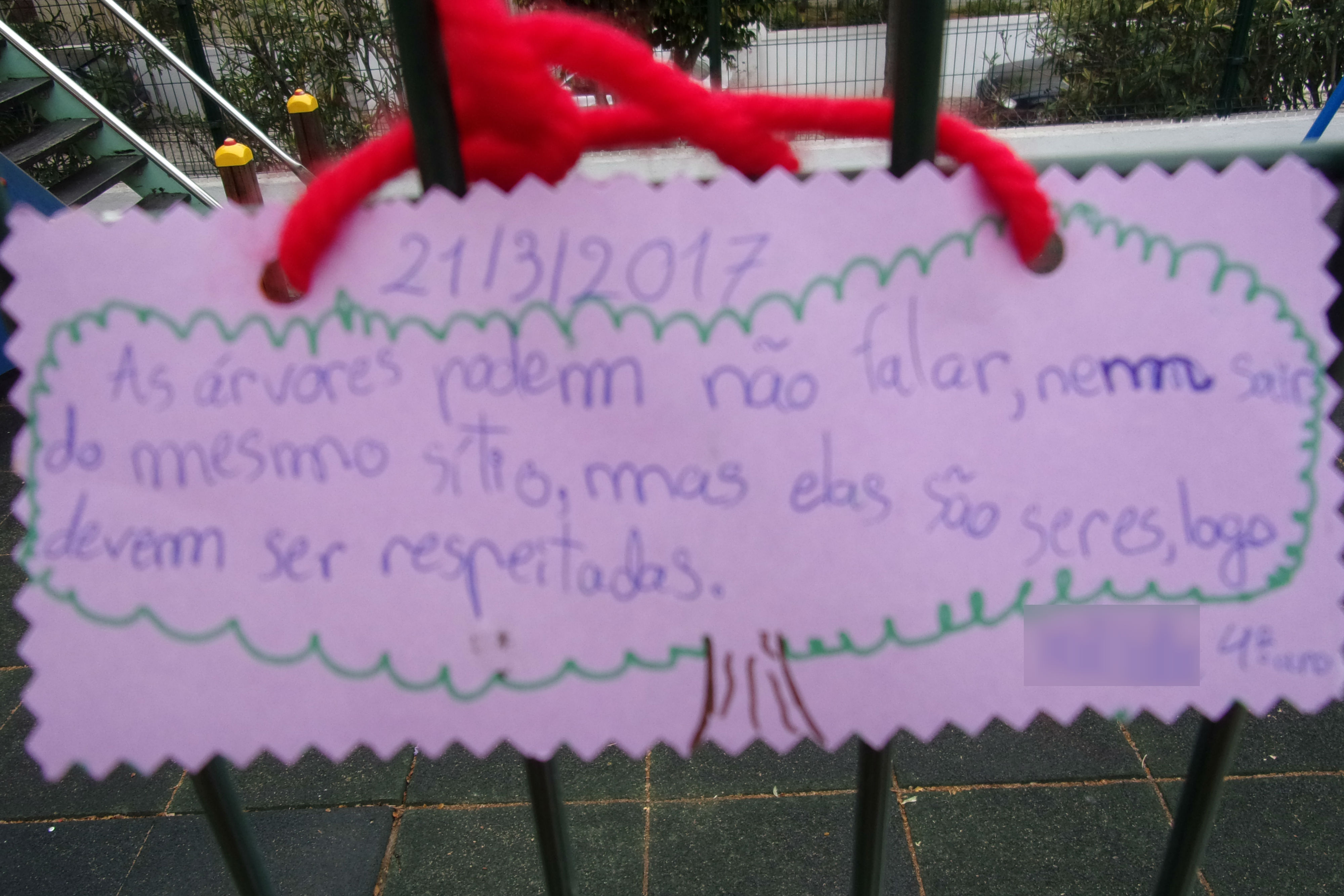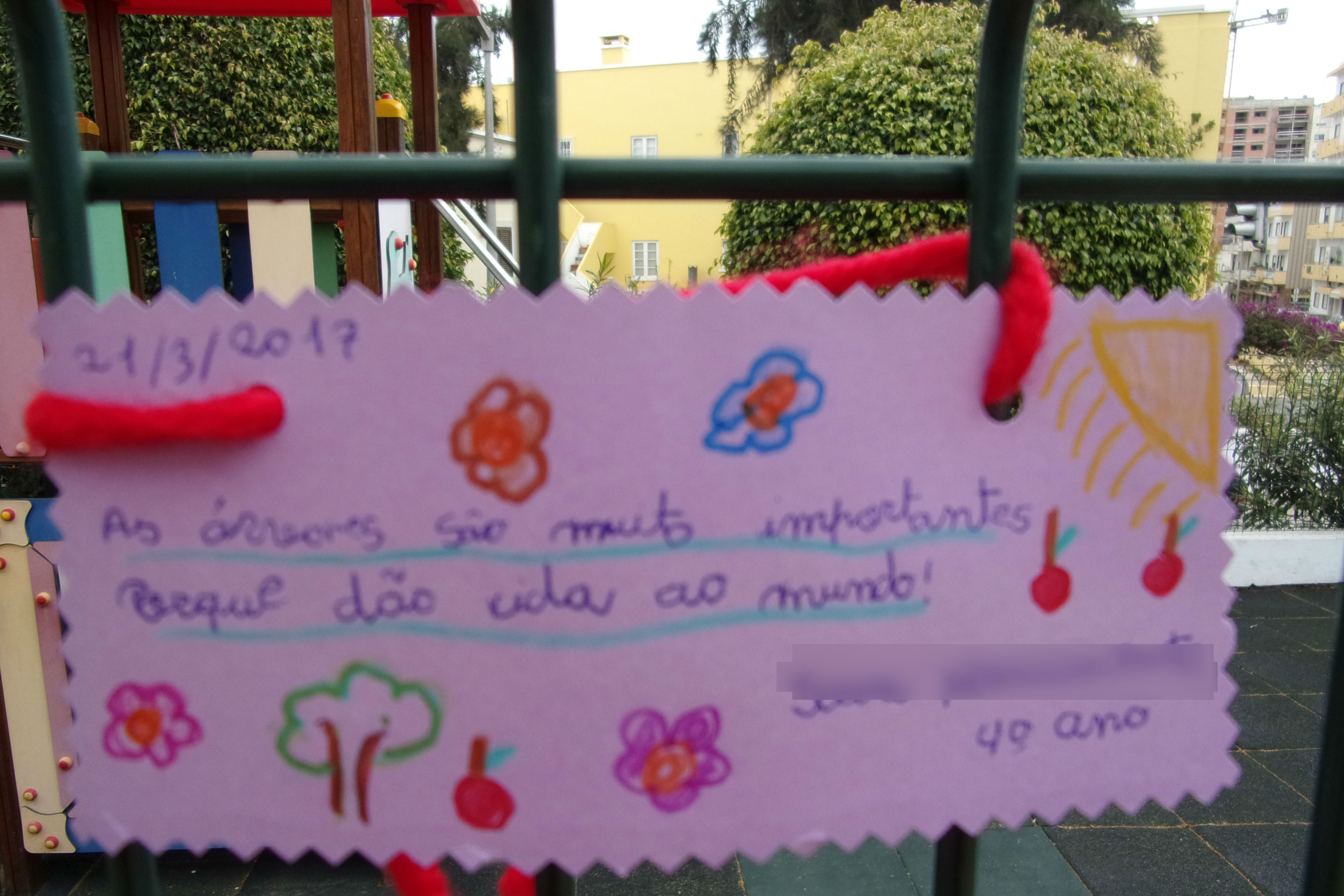 Plantar a árvore no Colégio implicou todos os alunos. Os alunos dos 3 anos mexeram e manusearam a terra, estimulando os sentidos e ganhando novas percepções. A sala dos 4 anos ajudou colocando a terra no vaso. Os alunos dos 5 anos tiveram a oportunidade de transplantar a árvore para um vaso de grandes dimensões. Os alunos do 1º ciclo elaboraram frases – em pequenas cartolinas – alusivas à efeméride onde revelaram as suas preocupações ambientais e afixaram-nas nos parques do Externato.