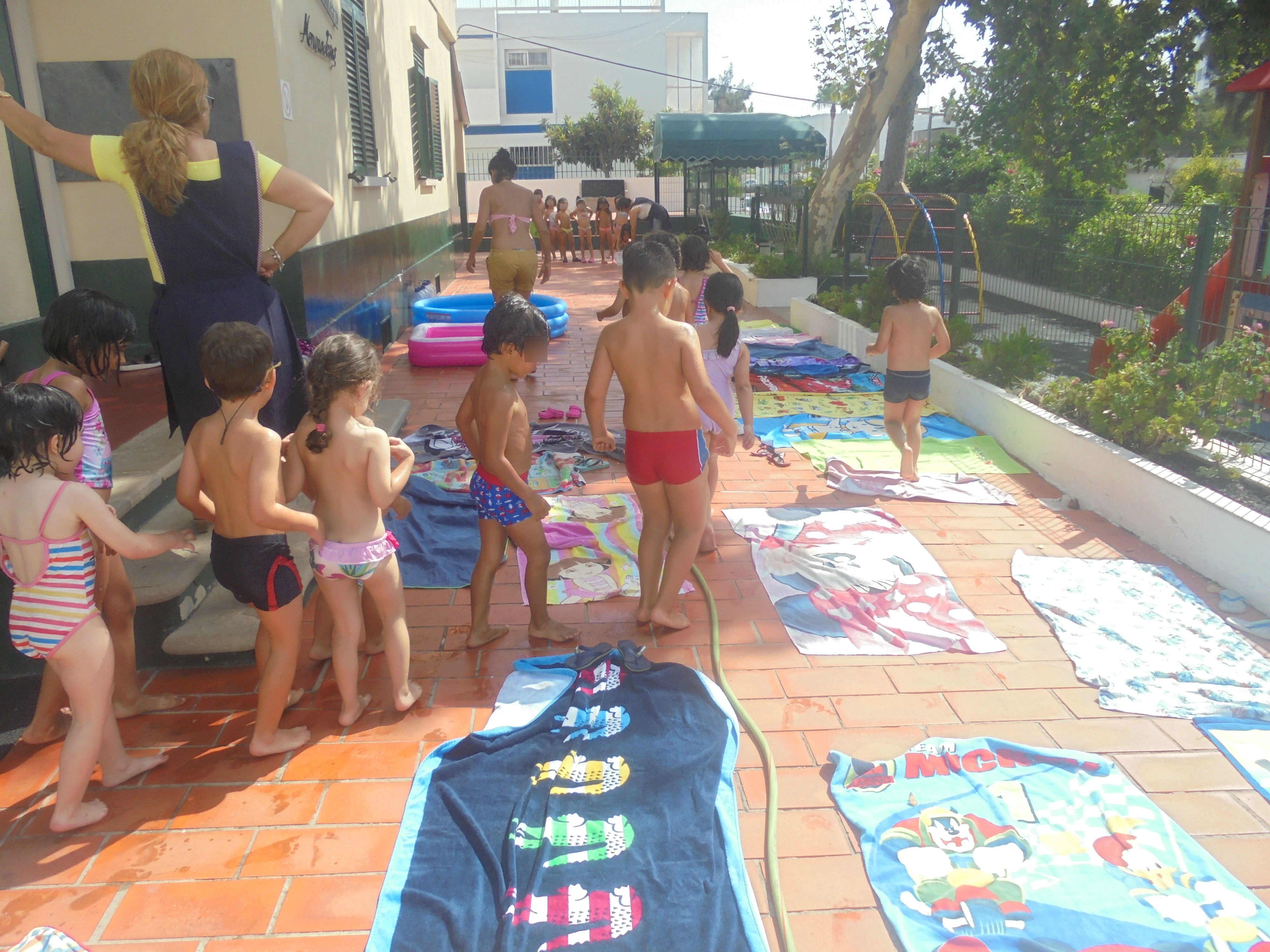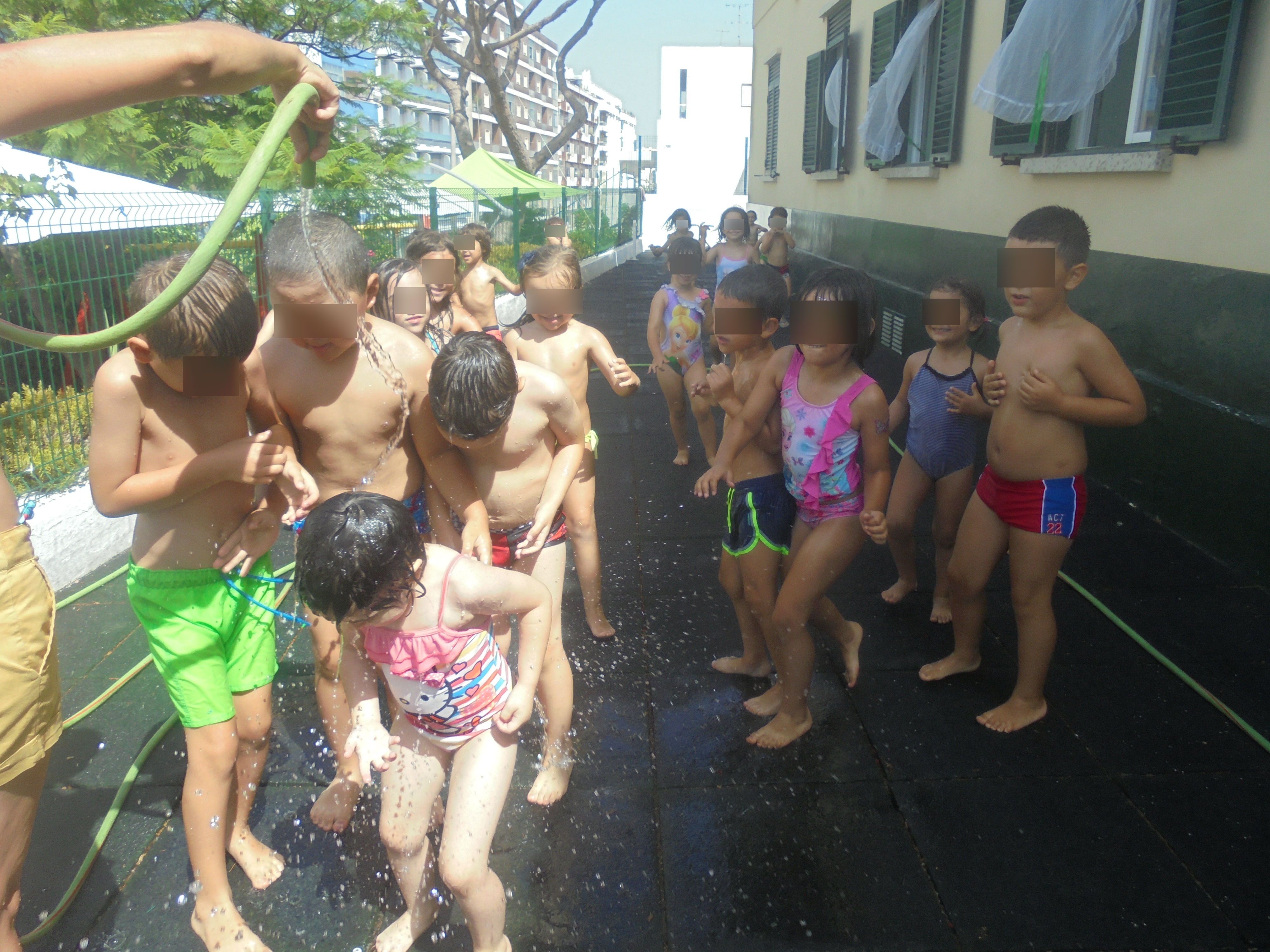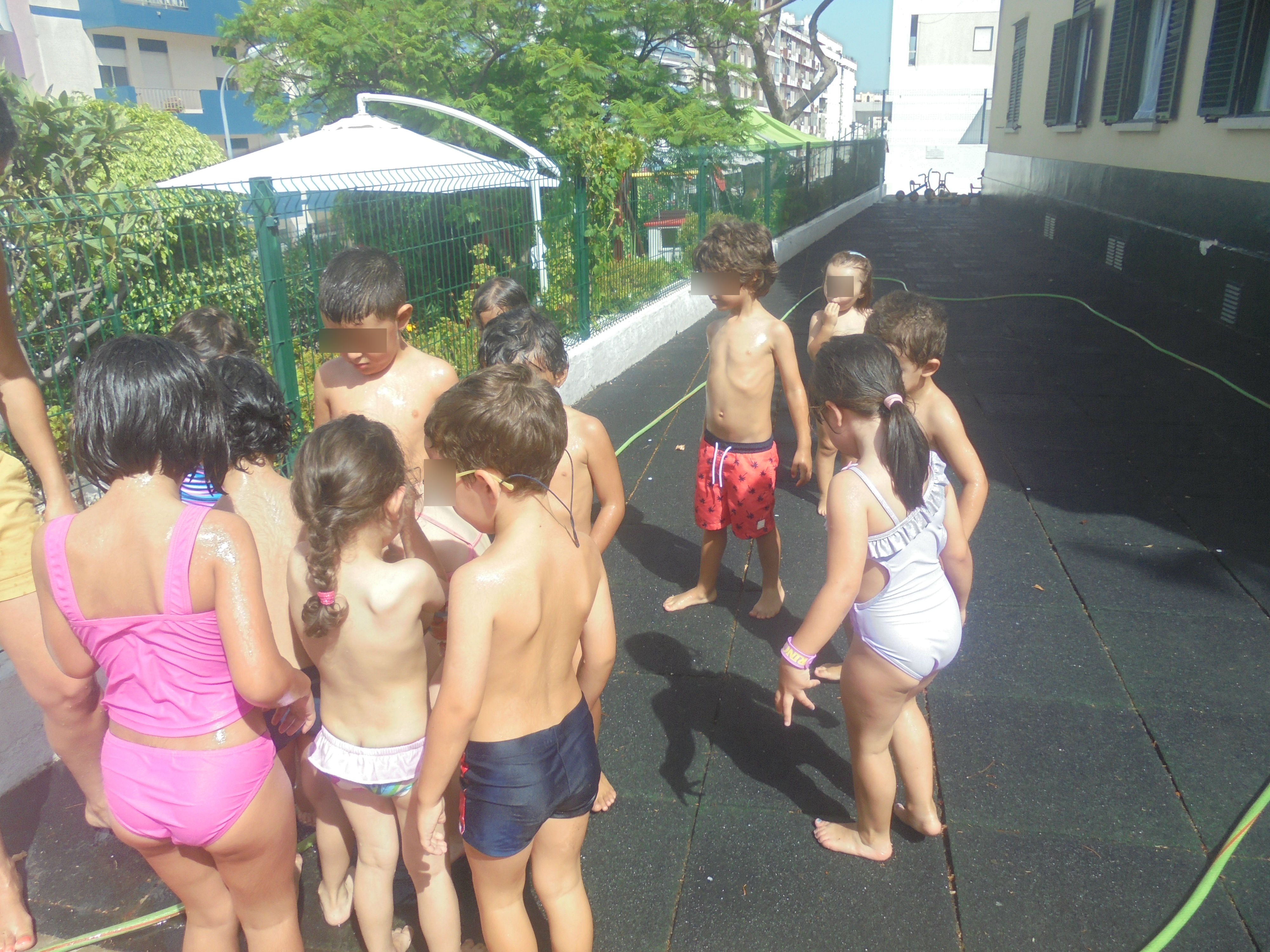 Também no pré-escolar realizamos atividades únicas neste mês. Afinal, piscina e “mangueiradas” na Escola só mesmo em julho e com muito calor!!!