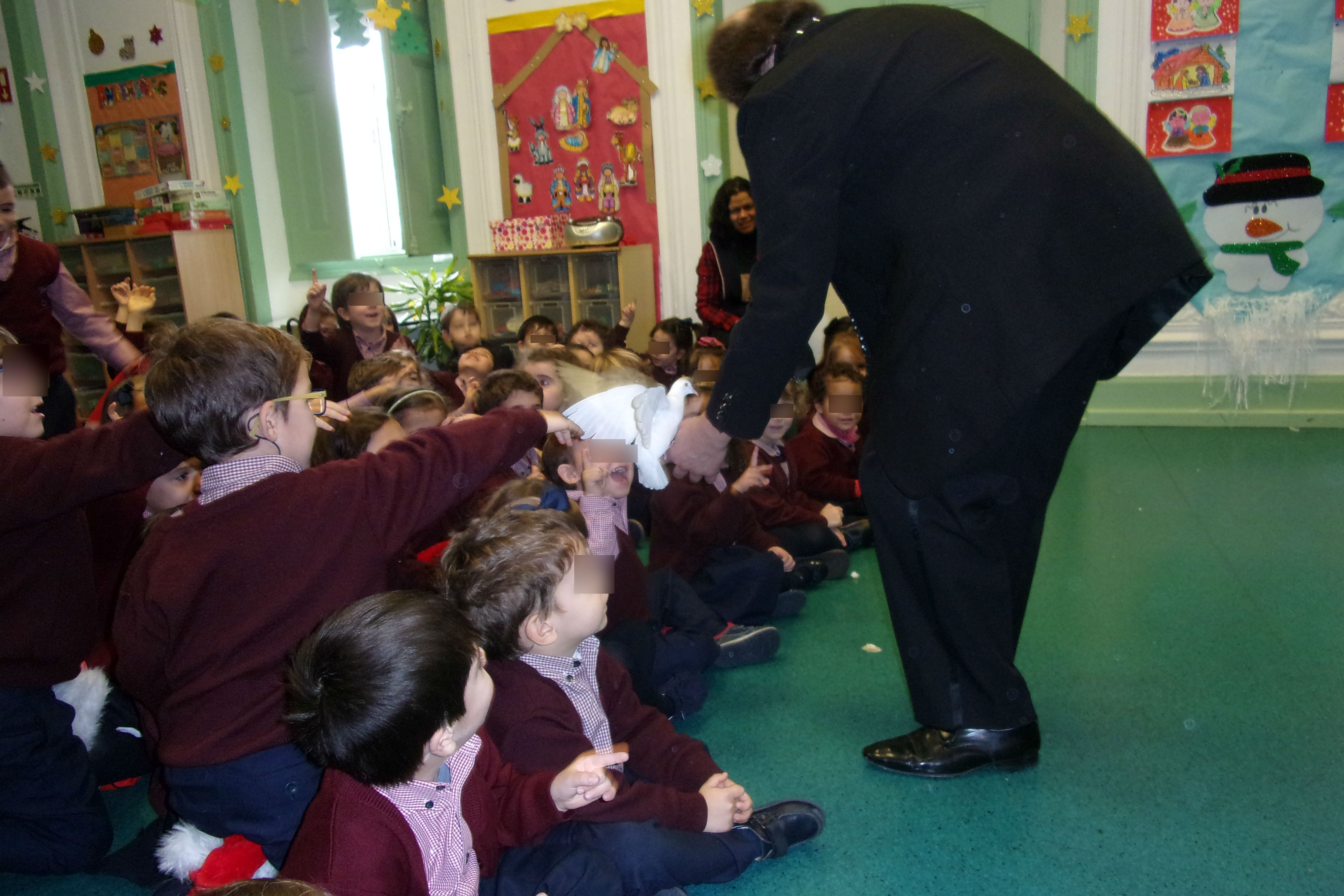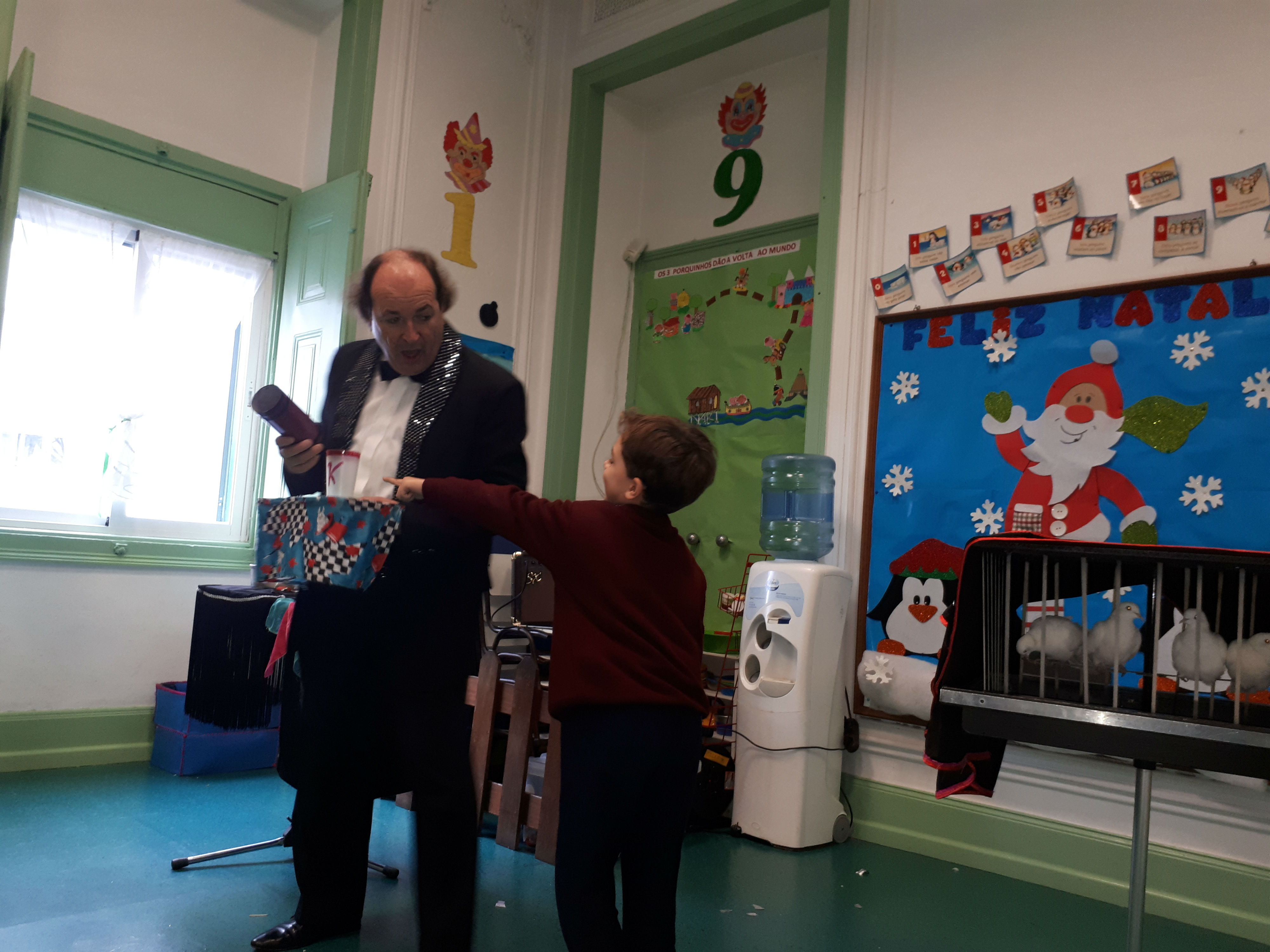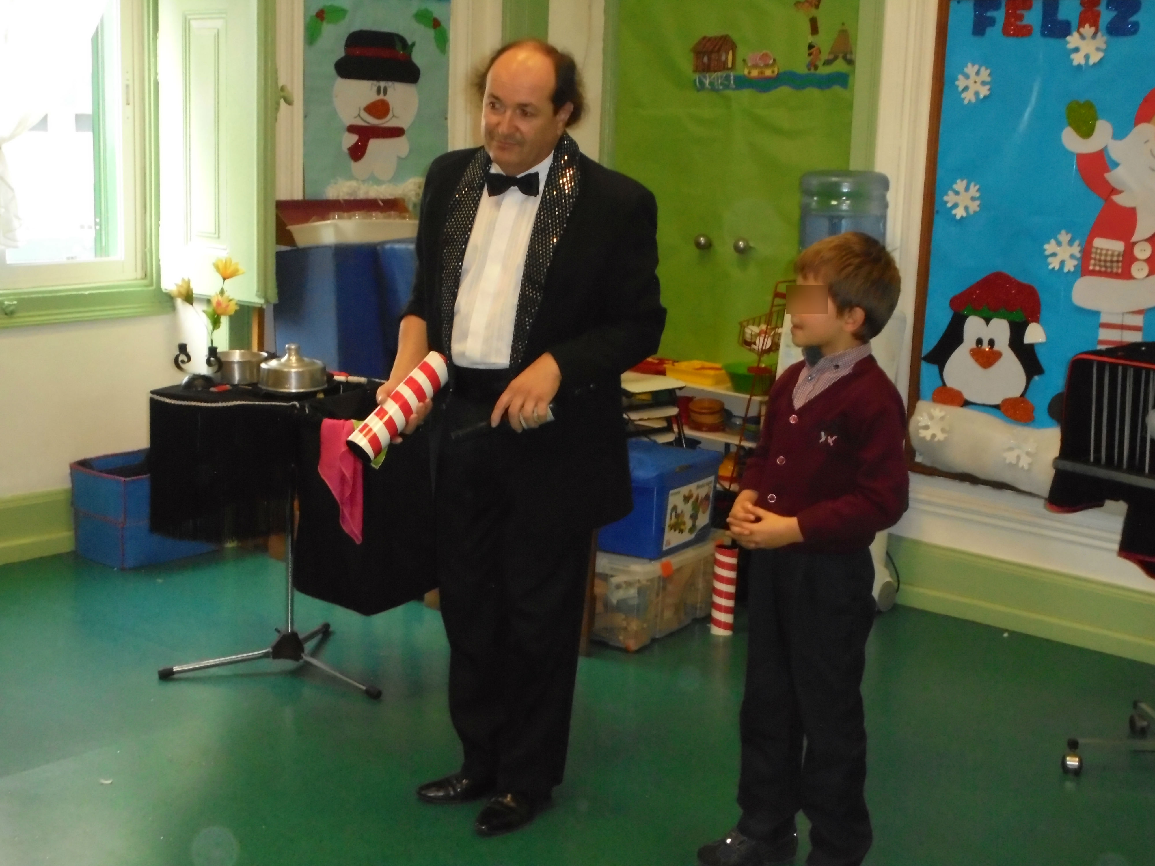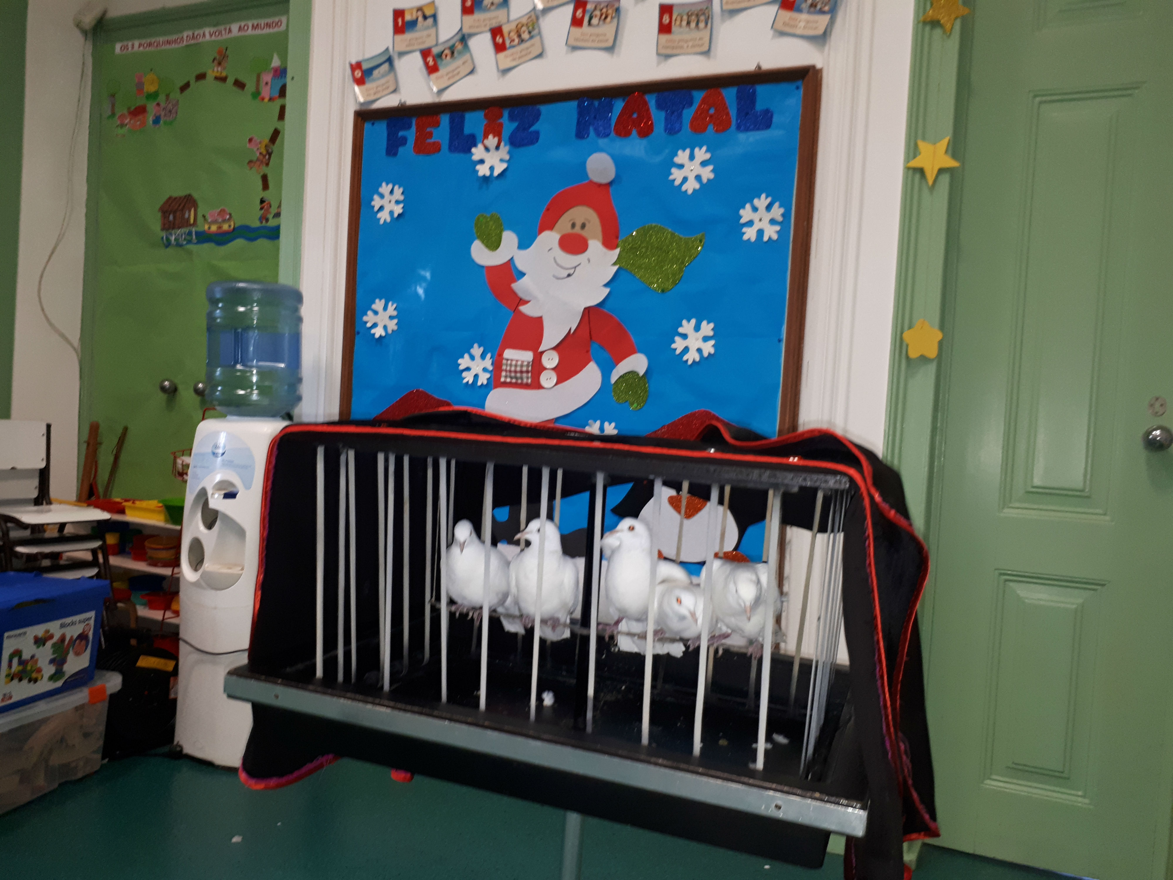 O dia da festa de Natal – na Escola – é sempre um dia mágico. Este ano especialmente! A vinda à nossa festa de Natal do mágico Ambrósio foi extraordinária. O mágico, num espetáculo surpreendente para crianças e adultos deslumbrou com os seus truques. As pombas, que apareciam e desapareciam, as flores, os lenços e as moedas que como por encantamento mudavam de local, de dimensões e até de cor, entusiasmaram e deixaram incrédulos todos os que assistiram ao espetáculo. A vinda do Pai Natal, no período da tarde, que não se esqueceu de nos visitar, deixou-nos os muito aguardados presentes. Este ano, para os mais pequenos (sala dos 3 anos) realizámos, com a ajuda do pai Natal, uma largada de balões vermelhos e brancos que ajudaram ao ambiente de festa e de alegria. Os balões subiram e não pararam de subir….