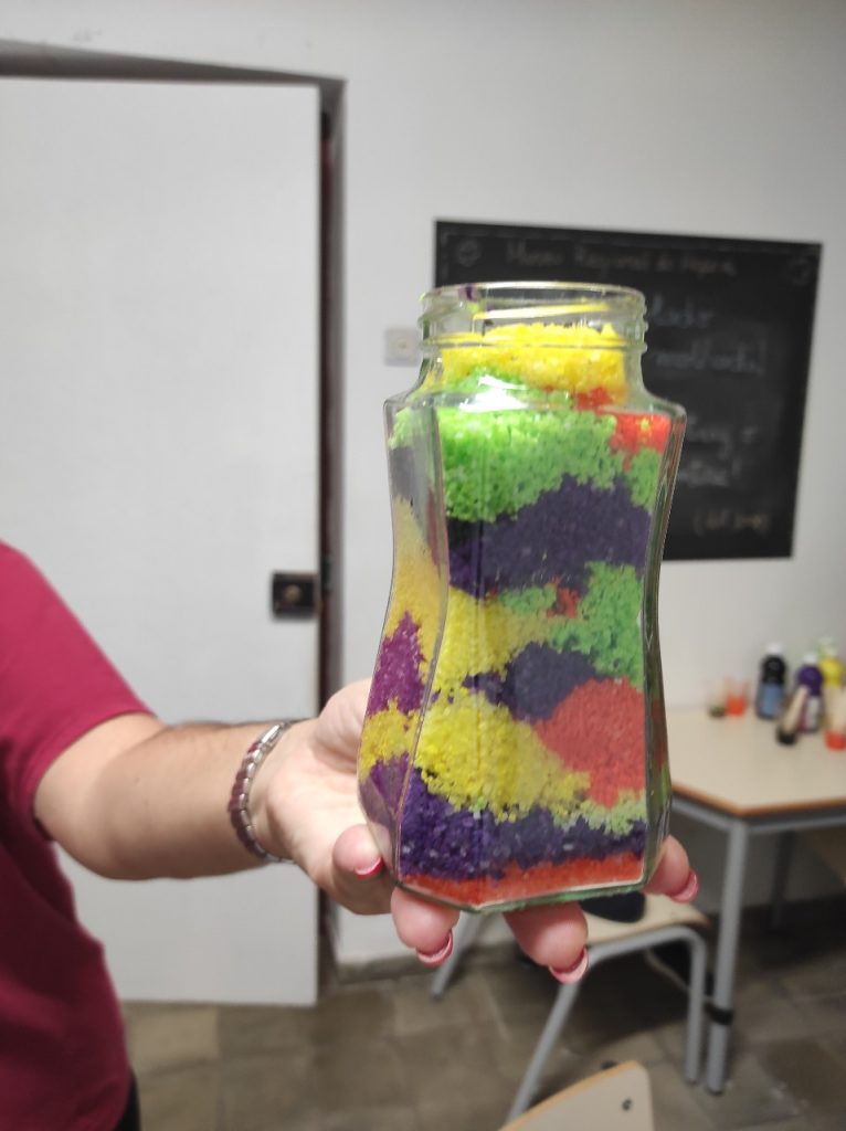 Além do mais, as visitas de estudo estão para as crianças como os dias de festa: são um escape à rotina e uma forma divertida de interiorizarem conhecimento. No final pintámos o sal. Percebemos que o sal absorve os líquidos e se lhe juntarmos cores diferentes obtemos lindas decorações. Enchemos um frasco com sal colorido, que ficará na sala de aula para nos lembrarmos deste dia.